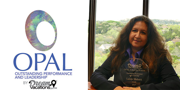 Fort Lauderdale, Fla. (March 8, 2017) – For the fifth year in a row, leading travel franchise Dream Vacations, which is a subsidiary of World Travel Holdings, the world’s largest cruise agency and award-winning leisure travel company, celebrates Women’s History Month in March by honoring a female franchise owner with the OPAL Award for Women. The company has named Austin business owner and Dream Vacations Franchisee Lainey Melnick the 2017 recipient of this prestigious award.