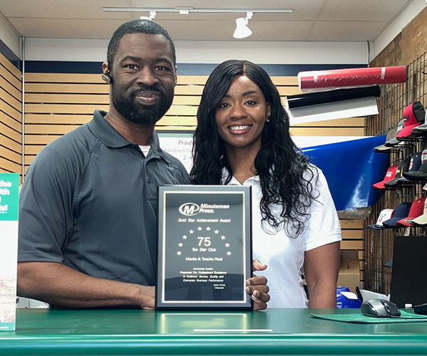 LIBERTYVILLE, Ill. – In February of 2022, Tamika and Martin Neal opened the doors of the brand-new Minuteman Press franchise in Libertyville, IL. Four years since their grand opening, Tamika and Martin have successfully built their business from the ground up. How did they do it? In the following interview, Tamika and Martin share their journey to Minuteman Press, how they’ve grown the business, giving back to the community, and why this journey to entrepreneurship means so much to their family.