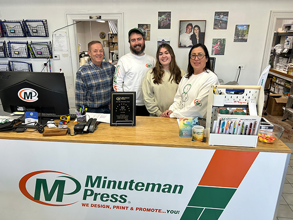 Minuteman Press Franchise, Lyons, IL. Pictured L-R: Steve, Devin, Emily Noel (Manager), and Lora Noel (Owner).